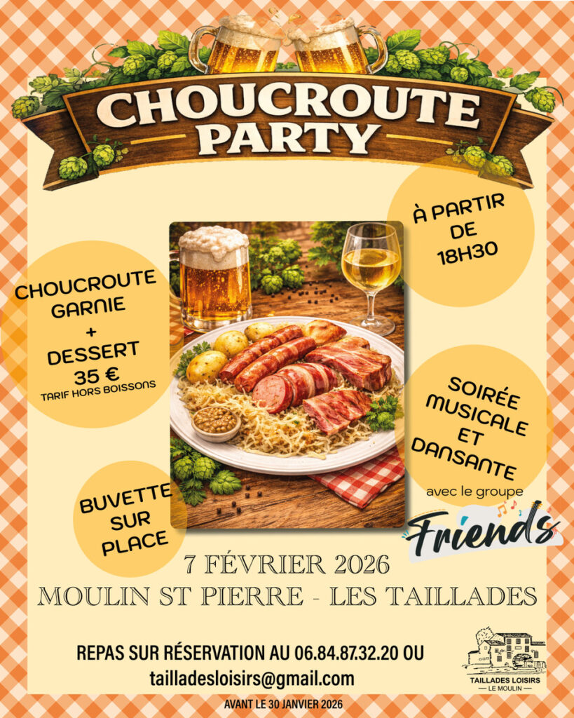 Venez passer une soirée conviviale en musique autour d’une choucroute.